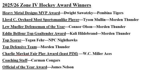 Congratulations to the Morden Thunder - the 2023-24 Zone IV Hockey Champions!